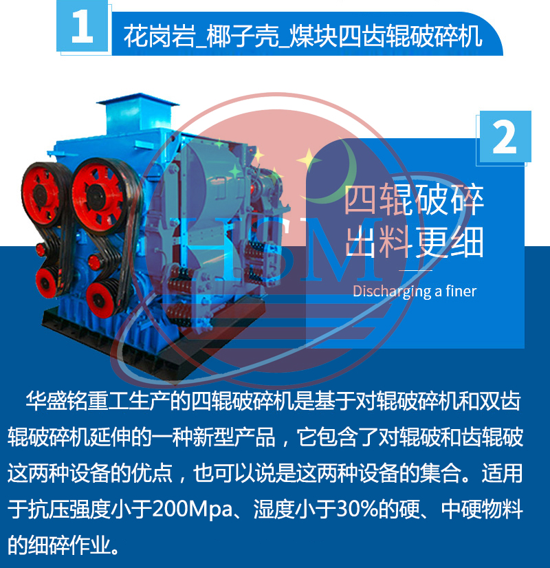 四輥破碎機也叫四齒輥破碎機,是一種冶金礦山設備配套中、細碎產品,適用進料粒度×lt;90mm、成品粒度要求100目至5毫米的超細碎作業。四個輥面分為堆焊輥面或者平輥面,按照用戶要求粒度選擇組合,該設備具有結構緊湊,占地小,破碎比大、產量較高。
